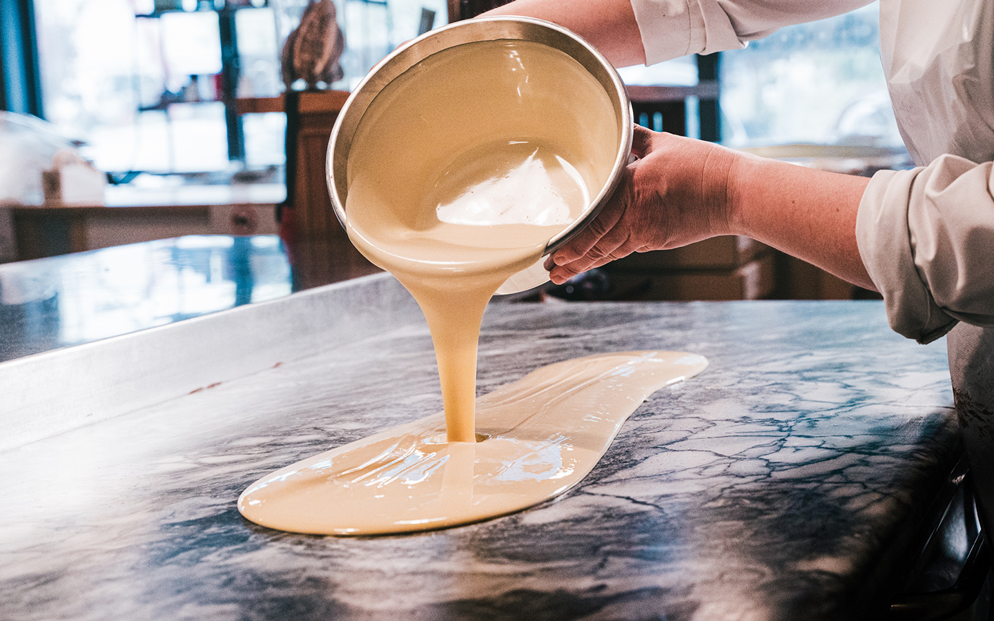 Natürlich können Sie im Anschluss an die Besichtigung die Spezialitäten des Hauses probieren und Ihre Kinder können an einem Workshop teilnehmen, bei dem sie mit Kakaobutter auf Schokoladenfische malen.