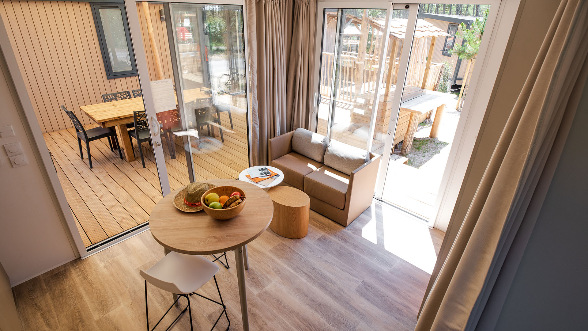 Ressourcez-vous au cœur de la pinède, à Naturéo. Nous proposons des hébergements insolites 100% bois mais aussi des mobile homes et des cottages tout confort.
