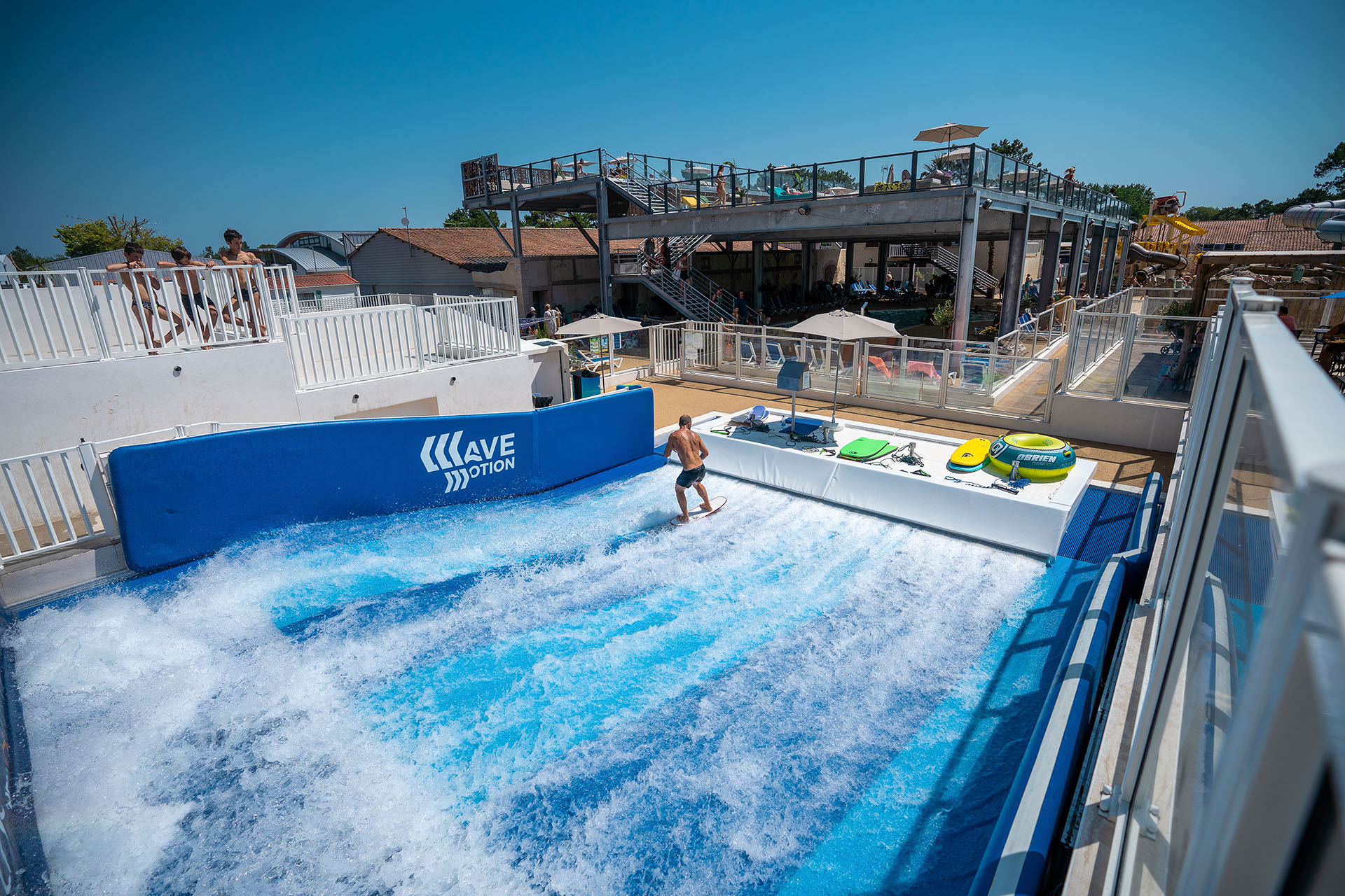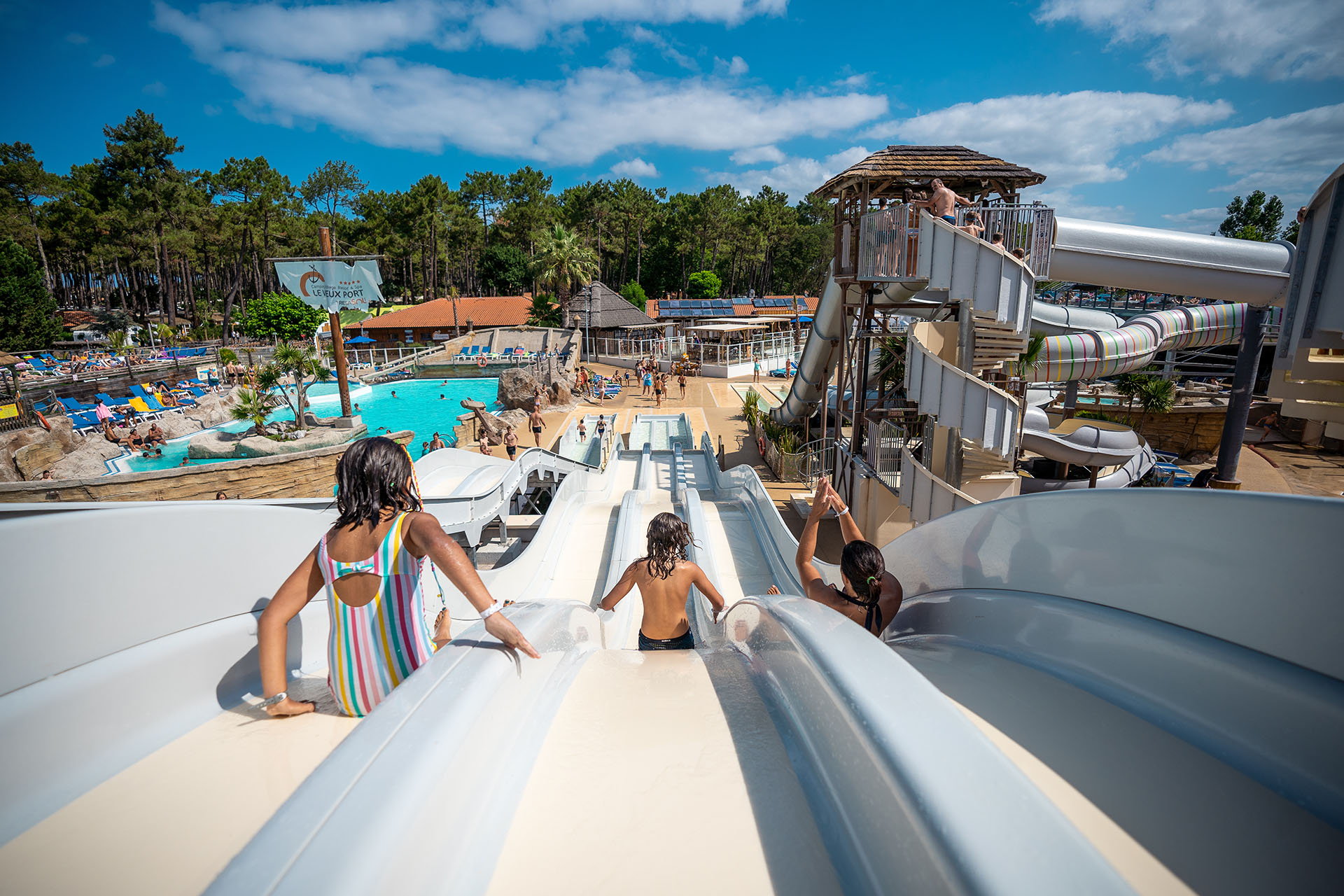 Niché dans une pinède de 30ha avec un accès direct à l’une des immenses plages de sable fin de l’Océan Atlantique, le Camping Village Resort & Spa Le Vieux Port ***** vous invite à séjourner dans un complexe unique sur la Côte Landaise. Faites le plein de sensations et profitez de 11 toboggans, d’une piscine à vagues, d’une aire aquasplash pour enfants 100% fun et aussi… d’une machine à surf pour ravir les amateurs de glisse ! Inédit dans un camping 5* ! Posez vos bagages, garez votre voiture, tout est sur place… Restaurants, bars lounge, supérette, car wash, terrains multisports, espace bien-être … vous ne manquerez de rien. Notre équipe propose des animations sportives & ludiques 7j/7 ainsi que des spectacles 3x par semaine en haute saison au sein de la plus grande salle évènementielle des Landes : l’Arena du Vieux Port ! Ici, tout est réuni pour passer des vacances inoubliables !