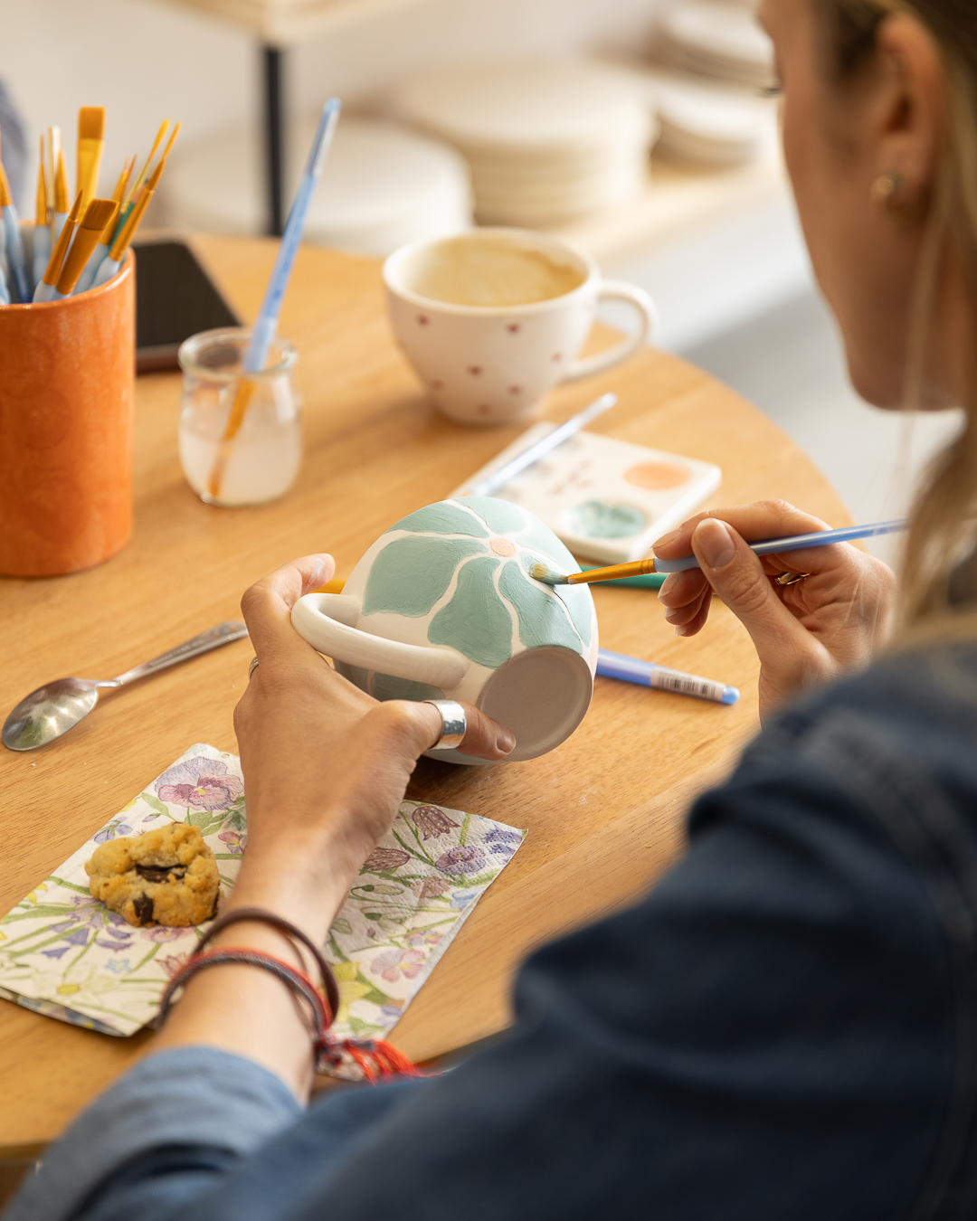 Enjoy a ceramic painting workshop, accompanied by a drink and a treat.